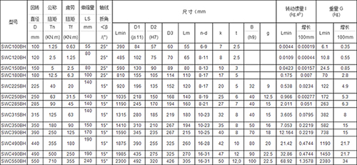 | SWC-BH型十字軸式萬向聯(lián)軸器基本參數(shù)和主要尺寸 mm |