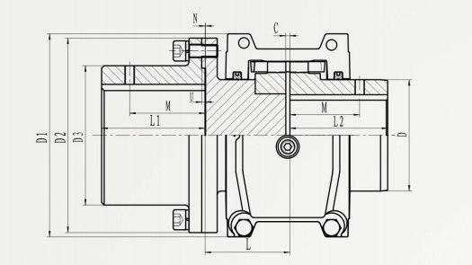 蛇簧聯(lián)軸器的結(jié)構(gòu)緊湊、外形尺寸小,工作可靠,適用于連接兩同軸線的中、大功率的傳動(dòng)軸系。具有一定補(bǔ)償兩軸相對(duì)偏移的減震、緩沖性能。工作溫度為-30℃-+150℃,傳遞公稱轉(zhuǎn)矩52-931000N.m.一般兩軸相對(duì)的許用位移量:軸向?yàn)?-20mm;徑向?yàn)?.5-3mm;角位移為1°15′。蛇簧聯(lián)軸器廣泛應(yīng)用于各工業(yè)領(lǐng)域。